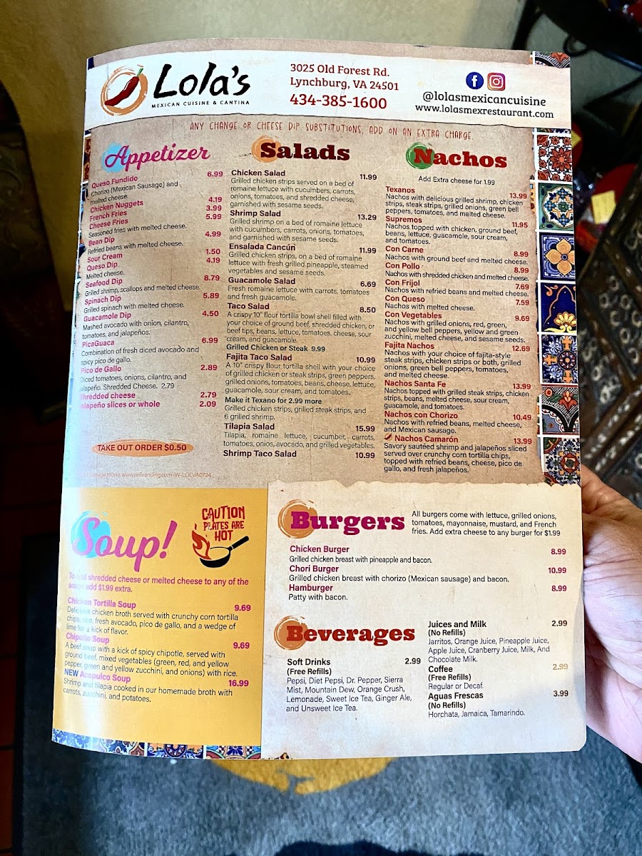 Lola's Mexican Cuisine & Cantina invites you to experience a culinary journey rich in flavor and tradition nestled in the heart of Lynchburg, VA. This vibrant eatery is renowned for its Tex-Mex delights, catering to diverse palates with quick and accommodating service. The hallmark of Lola's menu lies in its meticulously crafted dishes that prioritize freshness and taste, ensuring each plate is free from excess oil.